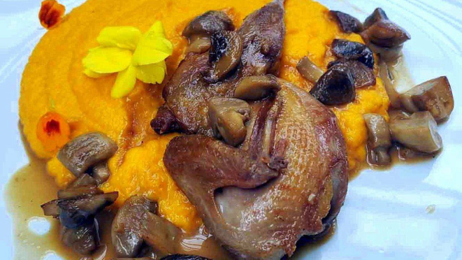 codorna e molho de cogumelos, a Quirera