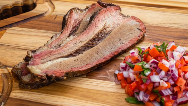 destaque cortes de brisket e costelinha suína defumadas ao estilo texano, no