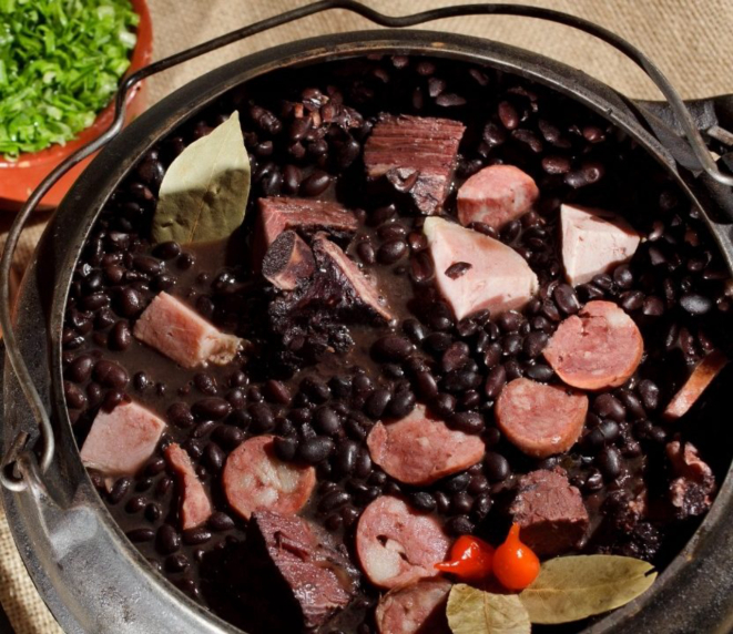 como maracujá, tangerina e goiaba, é recomendada para acompanhar a Feijoada texana. Este prato tem como