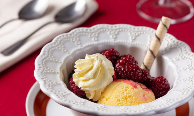 Mignon Roquefort, Camarões ao champagne e o Sorvete de creme com amoras flambadas,