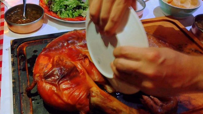 tem, à mesa, esse leitão pururuca, que se desmancha ao servir. Tanto que, para