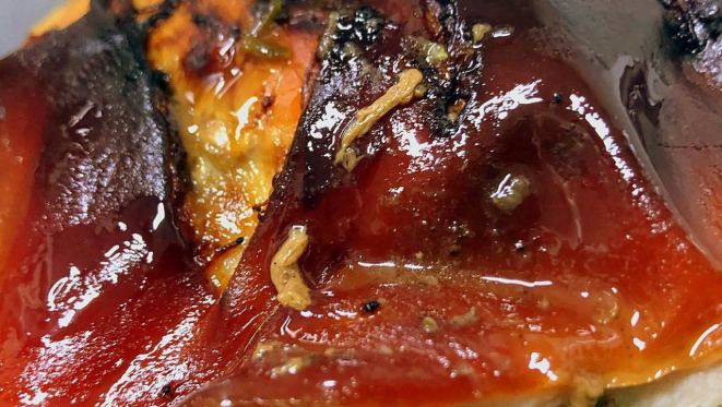 igual ao de lá, crocante por fora, macio por dentro e também cortado com o