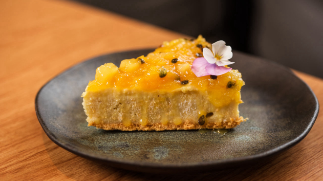 De sobremesa, Cheesecake de frutas amarelas (R$ 19,90)