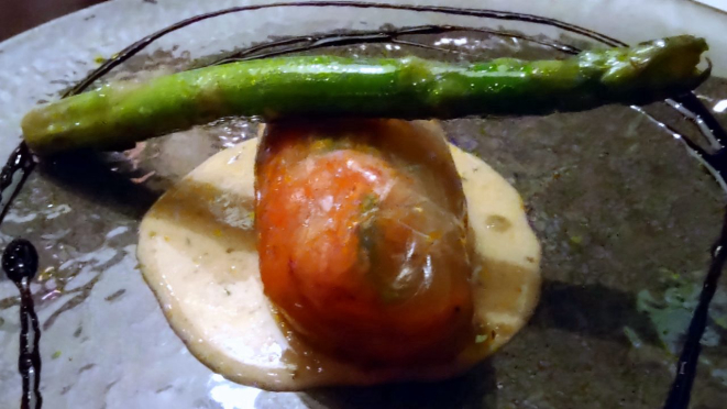 É uma variação de um prato já servido na casa, que antes não tinha o aspargo. São