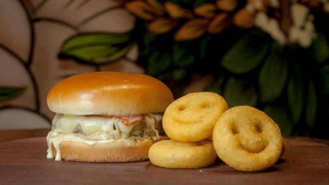 Para as crianças tem o Combo bezerro & juice, composto por hambúrguer no pão brioche, queijo e maionese, acompanhado de batata smile e, para beber, suco de uva ou laranja.