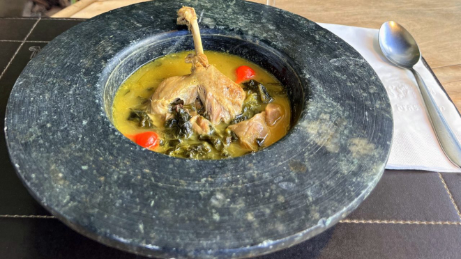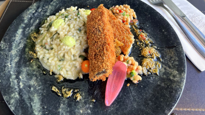 de tambaqui, risoto de jambu e vinagrete de feijão manteiguinha R$ 69 e