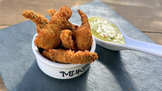 caranguejo e molho tártaro com jambu R$ 45 (6 unidades), entre as entradas.