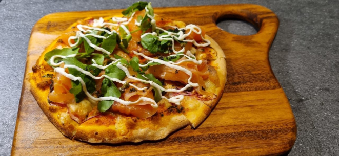 molho gastrique de laranja (R$ 44, 4 unidades) e Pizzeta de salmão defumado e agrião ao queijo cremoso Pomerode e ovas