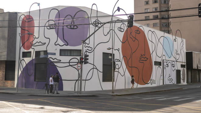 curitibano renomado internacionalmente, que pintou um painel gigante na fachada