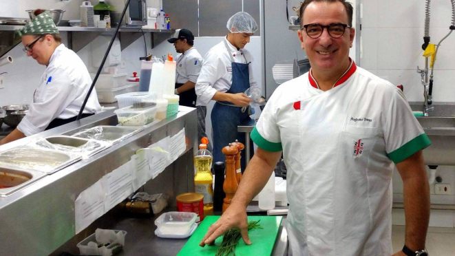 experiente chef italiano Augusto Piras, nascido na ilha da Sardegna, com