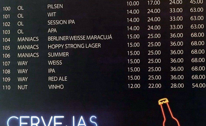 e Cervejaria Nut Bier, há possibilidade de escolha entre Pilsen, Witbier,