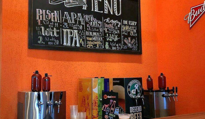 (chopes vendidos também em growlers para que os clientes possam leva-los para