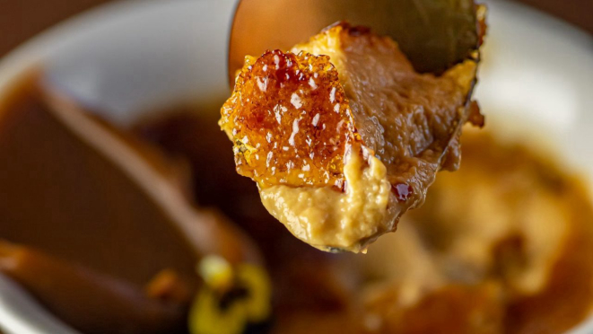 de chocolate com crumble de tâmaras ao perfume de rum (R$ 36).