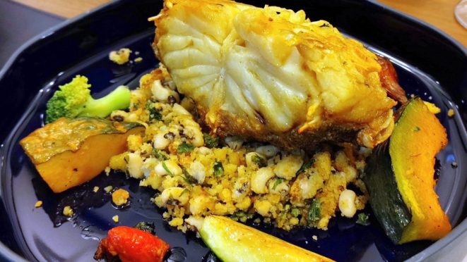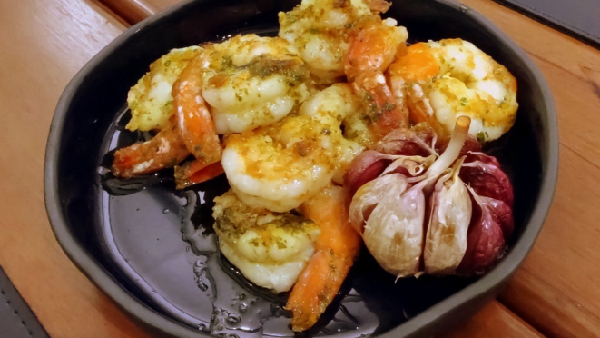 O cardápio assinado pelo chef Eliseu Fernandes proporciona ao cliente um tour gastronômico pelo litoral de Portugal e Espanha, com opções leves e pouca intervenção de condimentos fortes e frituras, valorizando a textura e o sabor natural da matéria prima. Como eles fazem questão de dizer, o molho de todos os pratos é o azeite. E aí é possível comer Ostras, Polvo no azeite, Bacalhau grelhado, Gambas al ajillo, Lagosta real grelhada, Casquinha de siri e a Paella típica espanhola. Aliás, além da paella tem também o Fideuá (não me recordo de outro lugar que sirva por aqui), que segue praticamente o mesmo processo, só que o macarrão substitui o arroz (e ambos têm opções vegetarianas).