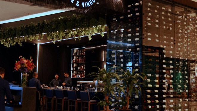 da casa. São mais de 300 rótulos de vinhos e espumantes, oferecendo uma