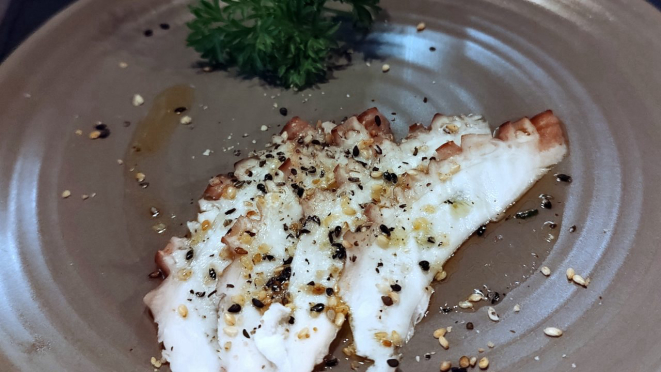 desfile. Chegou um Carpaccio de polvo