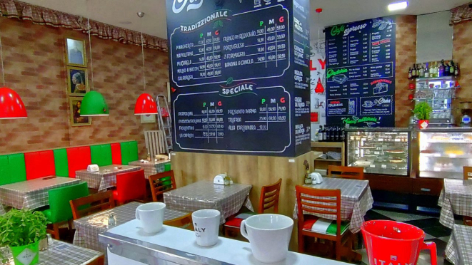 A exemplo do que acontece nas outras duas casas, o novo Italy Caffé também foi concebido para estar aberto direto, das 11h às 20h, com extensão de horário de fechamento no fim de semana. Servindo a qualquer momento o que o cliente desejar, como tortas, polenta, galinha caipira, filé à parmegiana, bruschetta, carpaccio, pizza em pedaço, pizza inteira, tiramisù, sodas, vinhos, antepastos e comidinhas. E, aos sábados, evidentemente, a atração maior é o Galeto al primo canto, que custa R$ 69,90 e serve muito bem duas pessoas.