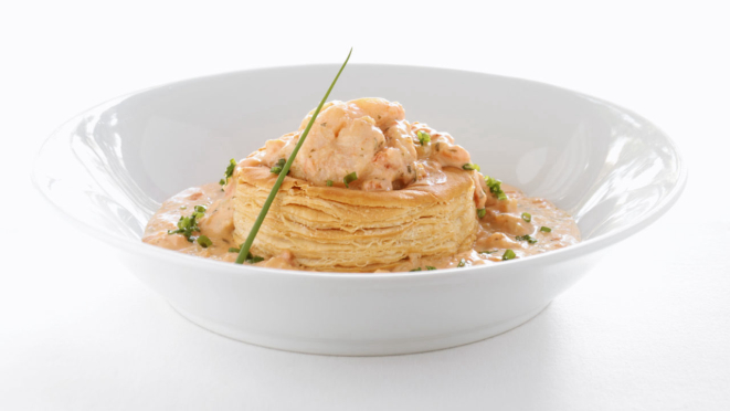 Arrogant Frog Tutti Frutti Blanc, um Vol-au-vent de camarão e lascas de bacalhau