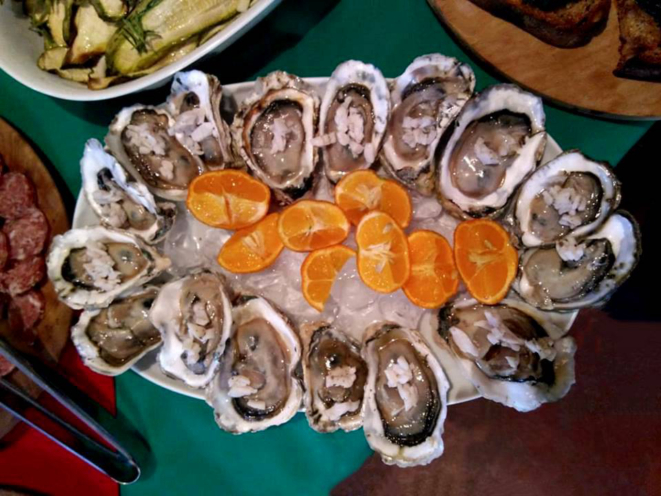 (desossado e assado inteiro) e muitas ostras de Guaratuba, combinadas com o