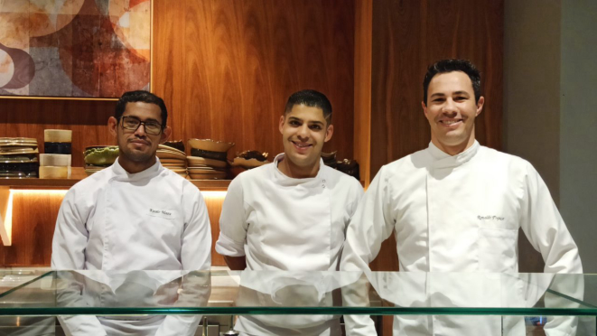 Mas seus companheiros de balcão também tiveram oportunidade parecida à dele. Já trabalhavam na casa, em outras atividades. Tanto Kássio Mauro quanto Thiago Henrique, que é primo do Ronaldo e está seguindo o mesmo caminho, compõem – com outros profissionais – a equipe que garante a boa qualidade no serviço e nos sabores do Con. Cozinha Autoral.