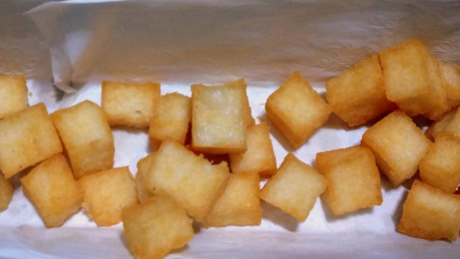 Aipim frito – (100g R$ 5,15 – 200g R$ 10,30)