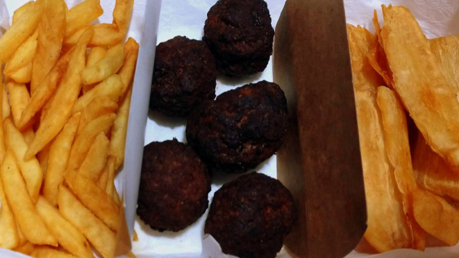 Bolinho de carne (100g R$ 6,85 – 200g R$ 13,65)