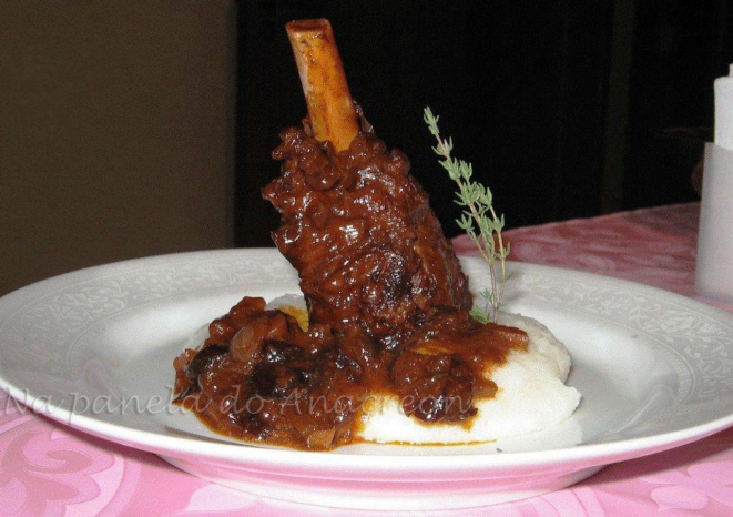 Canela de cordeiro ao vinho tinto, com ervas e frutas secas