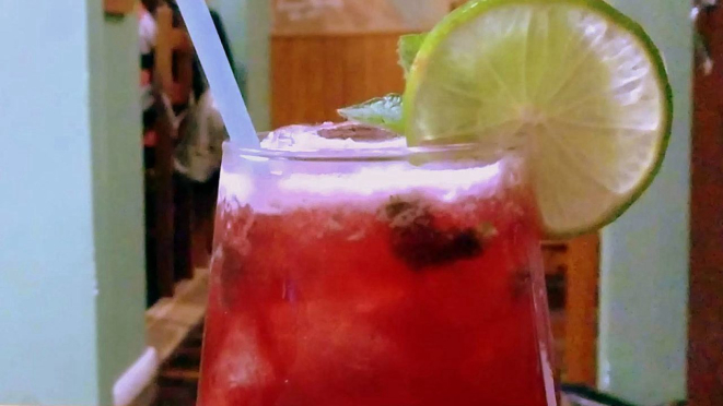 25), que leva Chicha morada (é um suco de milho escuro), vodca ou rum, limão e