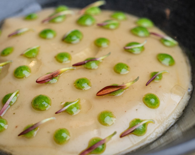 Rabanete branco com creme de cenoura e folha de figo (Foto: Munir Bucair)