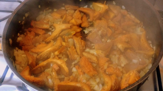 juntei os palitos de Porcini e deixei refogando por cerca de 7 minutos.