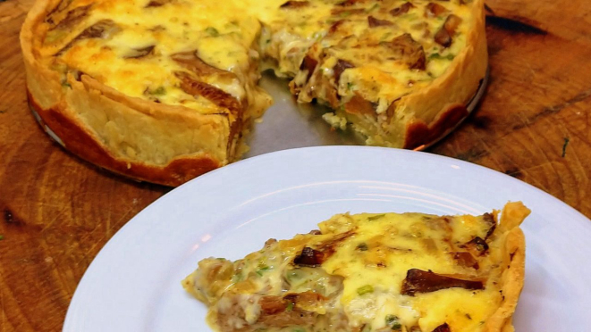 Quiche, que ficou irrepreensível. Vou deixar a receita aqui embaixo, já que o