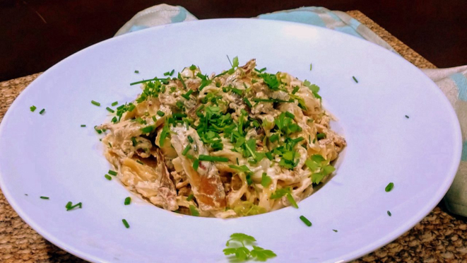 uma pitada de pimenta (o presunto já é salgado) e outra de salsinha picada. Pronto!