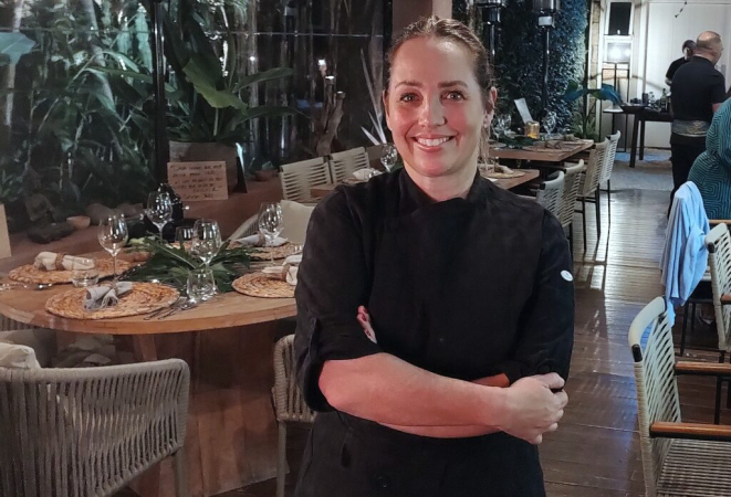 Para o prato principal, como é prática nesses eventos, são oferecidas duas opções, uma do mar e outra da terra. A primeira é o Arroz cremoso de camarão e coco, com manga, azeite de limão kaffir e servido com farofa de castanha-de-caju). Para os apreciadores de carne, a escolha pode ser a Costela bovina thai (costela desfiada, com demi glace agridoce de capim-limão, servida com purê de mandioca e saladinha fresca da horta). Ainda há a possibilidade de uma terceira versão, a vegana: Arroz cremoso de palmito pupunha e coco – que deve ser solicitada no momento da reserva (aliás, a chef garante que pode adaptar qualquer um dos pratos às restrições dos clientes, desde que avisada com antecedência).