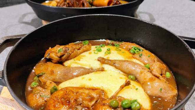 E foi justamente o prato que pedi no jantar de apresentação do restaurante, poucos dias antes de sua abertura oficial, em fevereiro de 2023 (confira a matéria aqui). Chasseur significa caçador, em francês. E era o molho que normalmente faziam para acompanhar as aves, com base em demi glace e daí vários itens, principalmente cogumelos. E a polenta, então? Cai em nossas origens, dos mais antigos, que associavam imediatamente codornas com polenta, que, para mim, tem sabor de infância, dos tempos em que a caça era permitida num curto período e meu pai sempre levava algumas codornas (e perdizes) para casa.