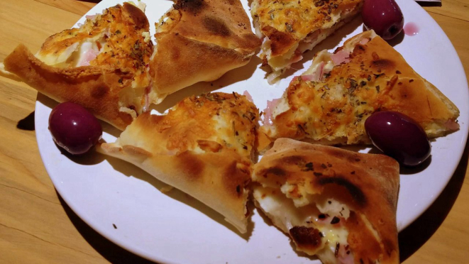 Para beliscar veio um Corniccione, que é um primo do Calzone,