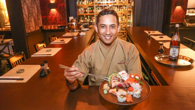 o Chef Tikinho, fundador do Sushi Arte, restaurante situado no Água Verde que