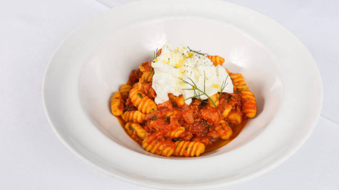 Há também combinações com carnes. O Strascinati (que lembra o cavatelli) tem