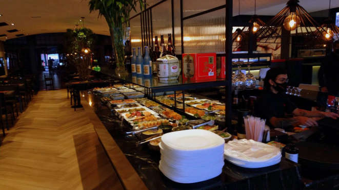 Para acompanhar, uma boa carta de vinhos, outra de sushis, além dos