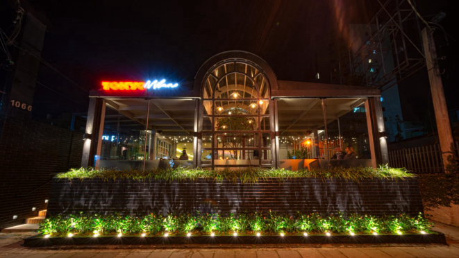 restaurante Caffe Milano. O projeto de arquitetura e de interiores foi