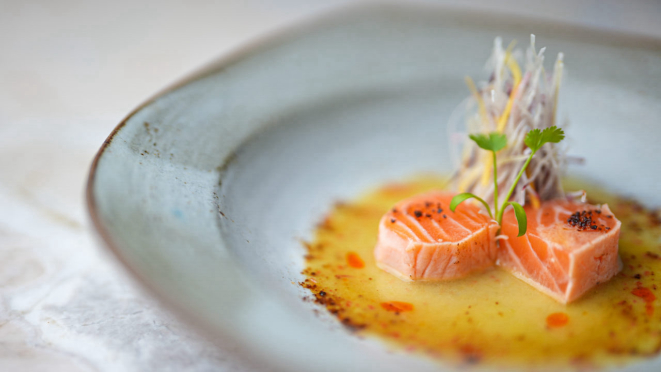 Começam as etapas com o Hagakure (Salmão selado na manteiga com