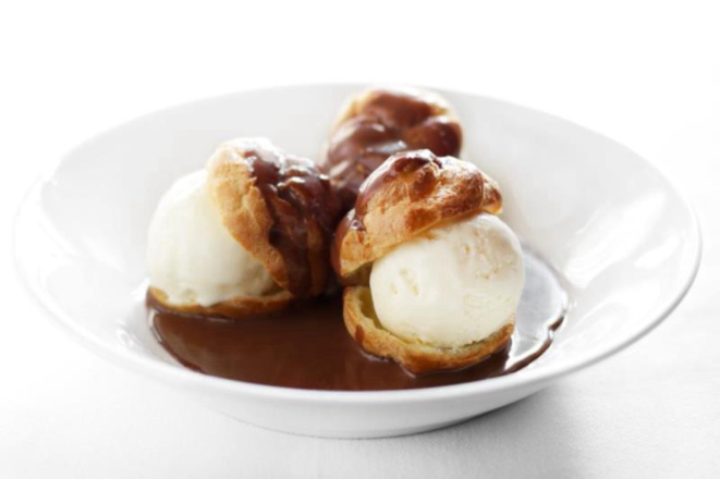 Para finalizar a noite, Profiteroles, uma massa Carolina,