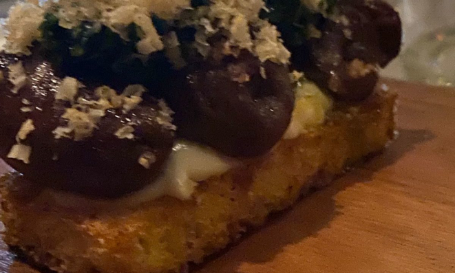 o complexo e saboroso caldo de lentilha, que veio com cogumelo fermentado, ricota azeda e exigiu um pão pra não deixar vestígios;