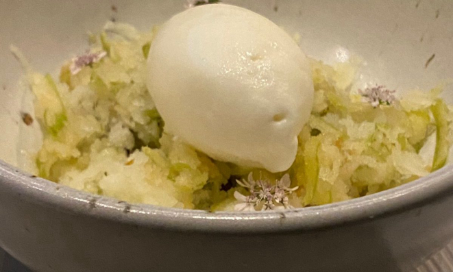 da Manu: maçã, mel e uma muçarela de leite de vaca cremosa, suave, refrescante e perfeita para finalizar a refeição.