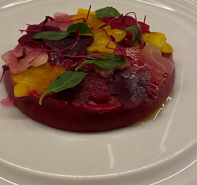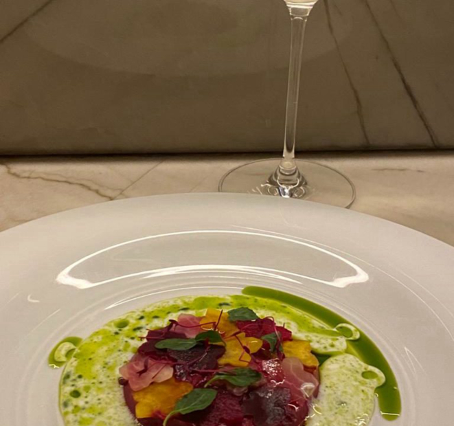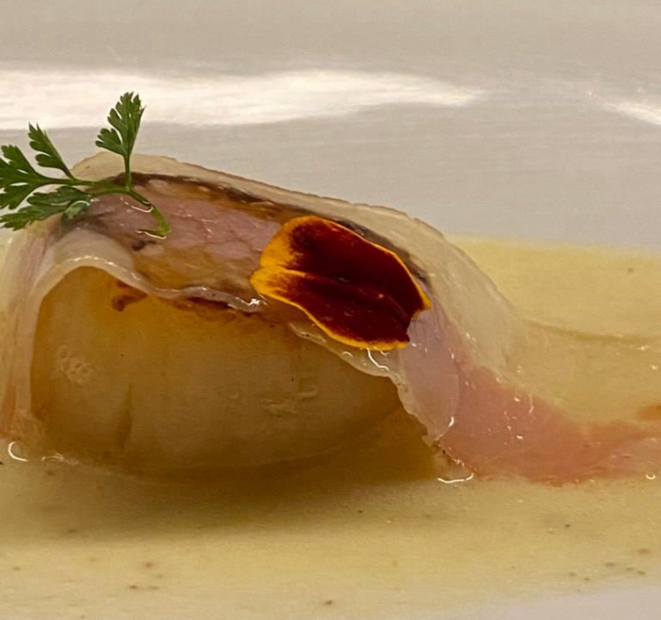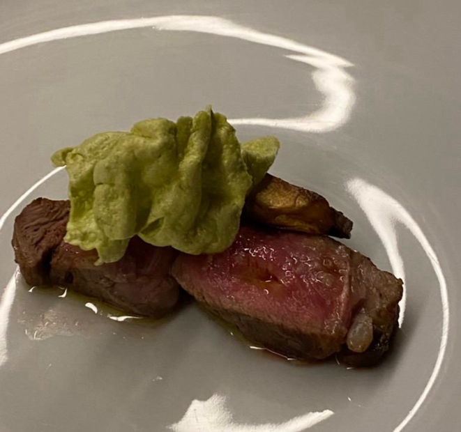 Bem, a vieira no beurre blanc, com guanciale lambuzada de mel de saiqui-mirim, acorda as papilas, tem textura e sabor delicado para conquistar. O entrecôte com cogumelo eryngui veio no ponto e com umami, um bom arremate. Apesar de vários pratos, é um menu leve. Eu escutei clientes ao lado repetindo entre várias garfadas: “é delicada, é feminina, é saborosa, como é criativa a comida dela”. Resumiam.