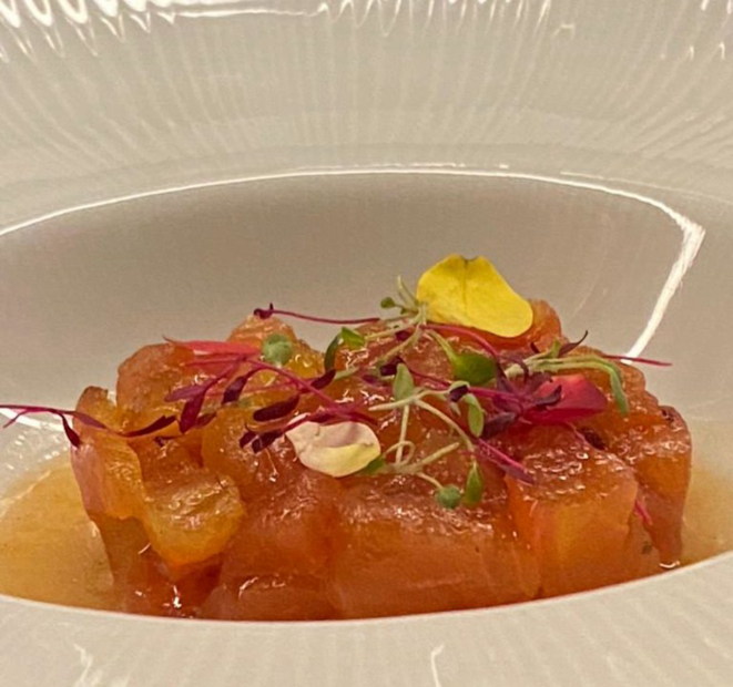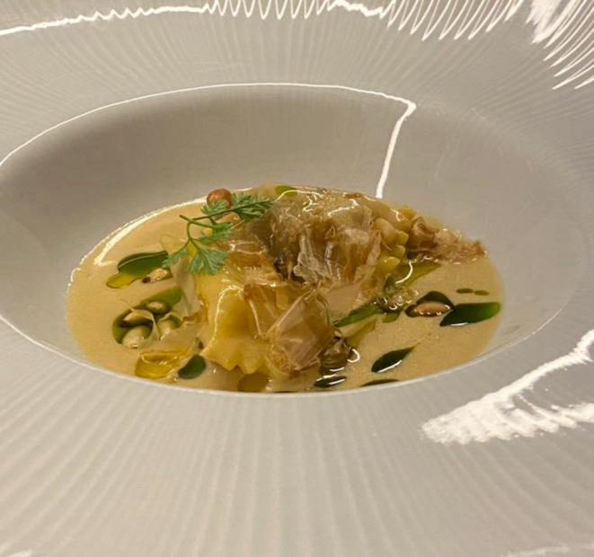 Quem tem a sorte de provar o ravioli “doppio de pato e milho, com o katsuobushi” dançando por cima, quer repetir. Inverto a ordem dos pratos. Apresento conforme lembro. O foie gras no brioche com maçã verde e matcha é o destaque dos snacks, fórmula difícil de errar. Entra uma combinação um pouco mais arrojada, é o agnolotti que tem queijo de cabra, limão confit, mel e alho negro. As massas são perfeitas e a chef deve retomar o projeto exclusivo para elas. Merecem.Tássia tem tino para os negócios. Recentemente, abriu uma confeitaria, a MAG, com pães e doces bem feitos inspirados na pâtisserie francesa, com ingredientes brasileiros. Escolhe a fórmula que alguns chefs abraçam a de ter vários negócios. Haja fôlego.